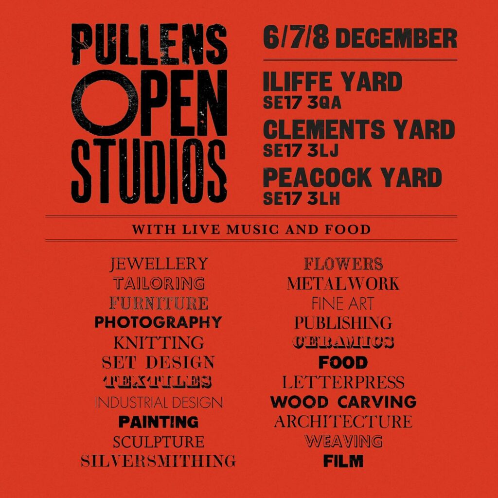 Pullens Yards Winter Open Studios Fri 5th / Sat 6th / Sun 7th December 2025